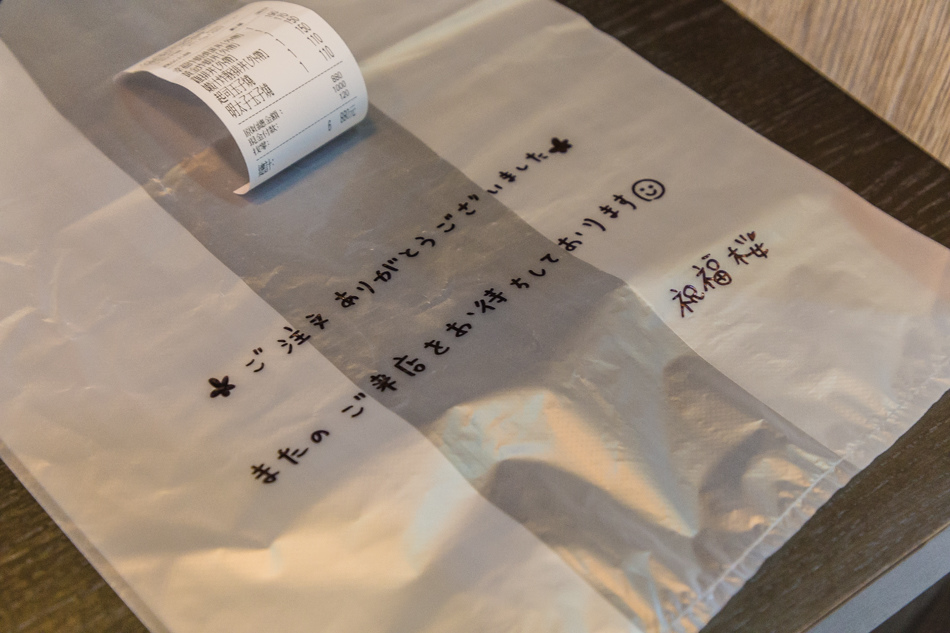 ▲剛好看到外帶的餐點,服務生美咩還用日文寫上感謝詞。