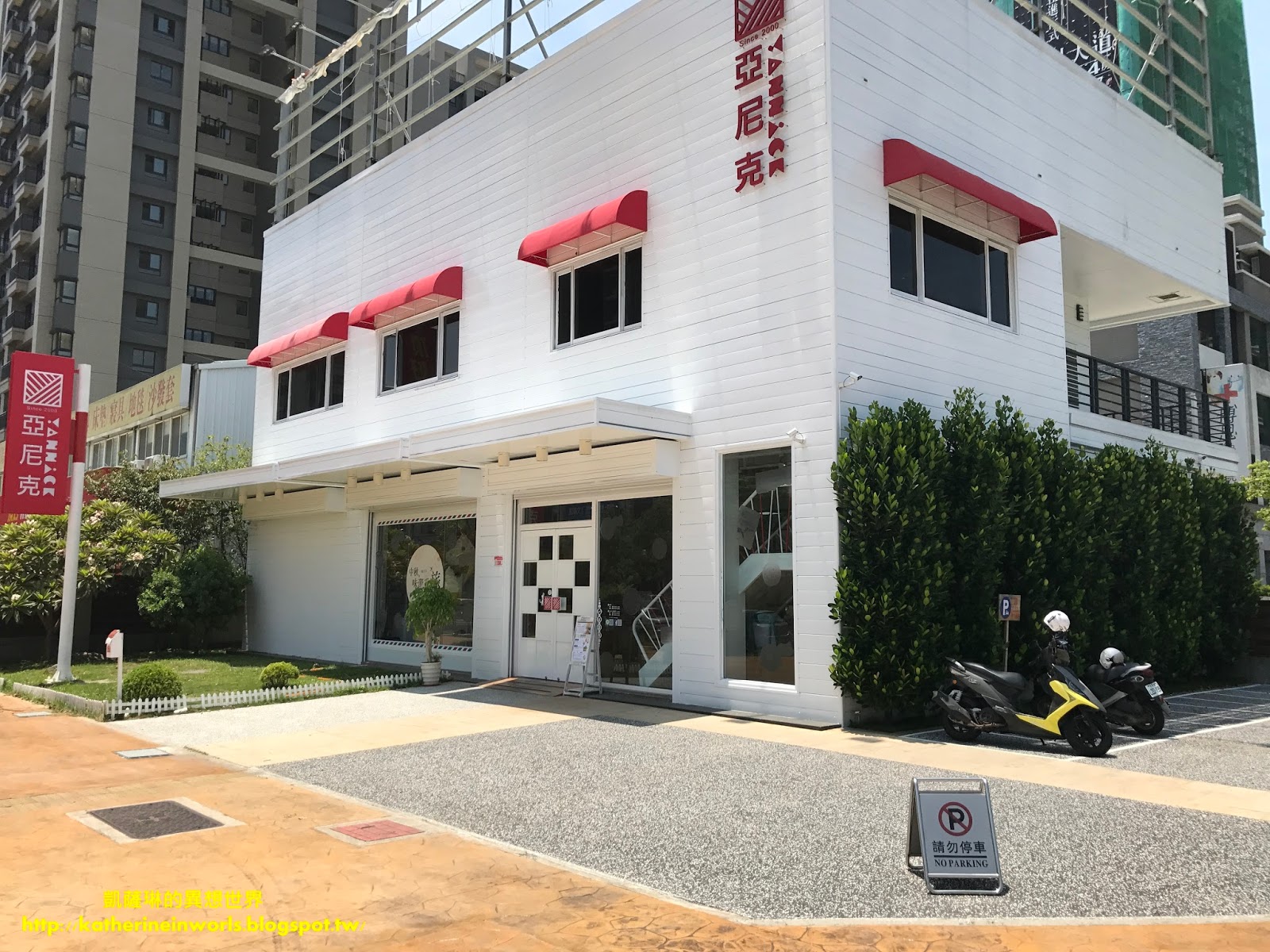 而靠近竹北頭前溪自行車道 / 豆腐岩 /河堤,開車約10分鐘,眼前一棟純白色建築物,亞尼克拓展至新竹來囉,無意間經過時,又驚喜又開心,終於可以到實體店面逛逛。
