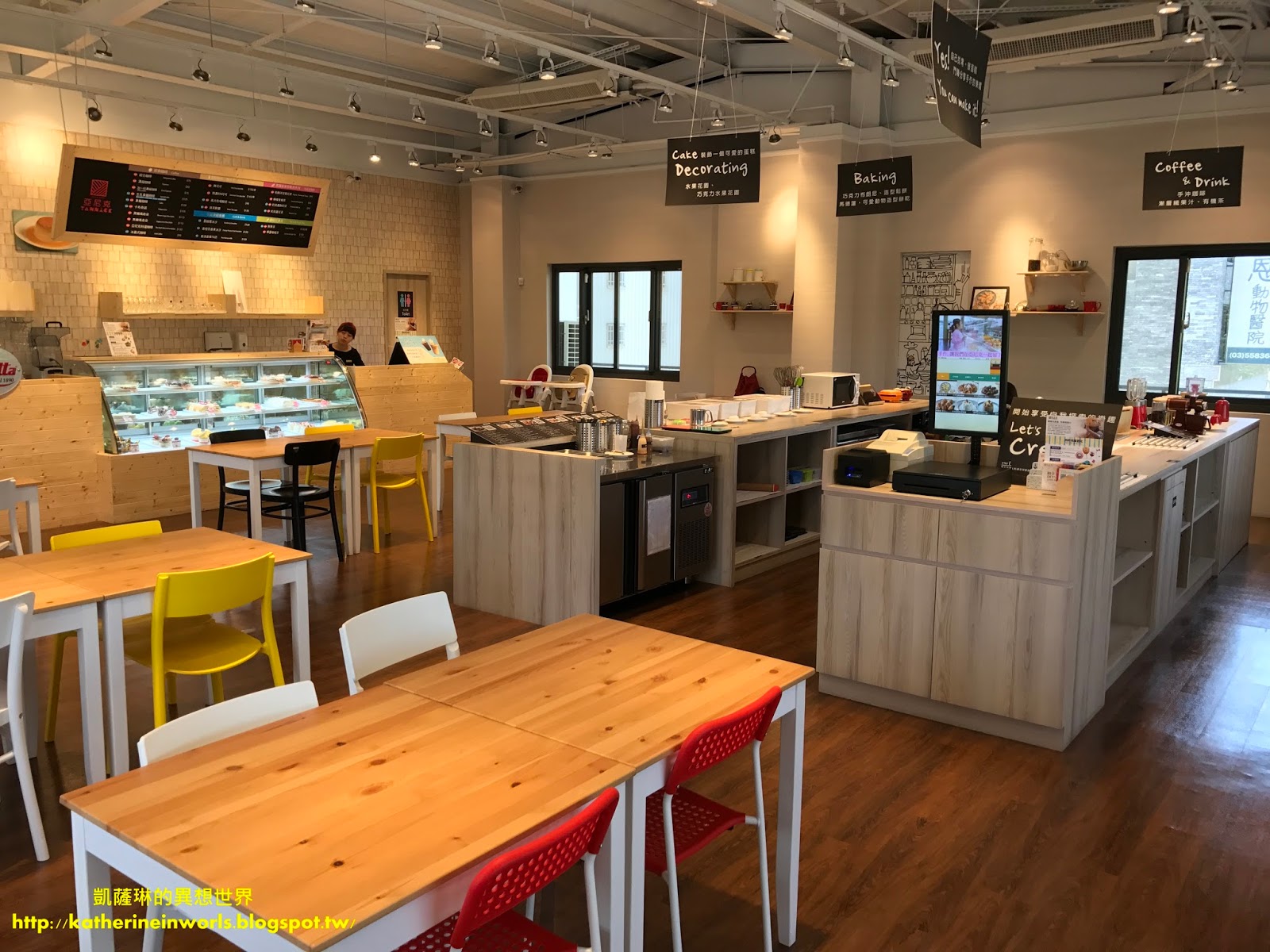 DIY區,將製作甜點的流程和烘培工具,仔細標明出並排列整齊,讓大人小朋友帶著做點心,體驗製作過程的樂趣及出爐的驚喜感,當天前往時,看到一對母子看著熱騰騰的餅乾,開心地尖叫著,在旁邊拍照的凱薩琳也感染了喜悅幸福,嘴角不自覺的微笑著。