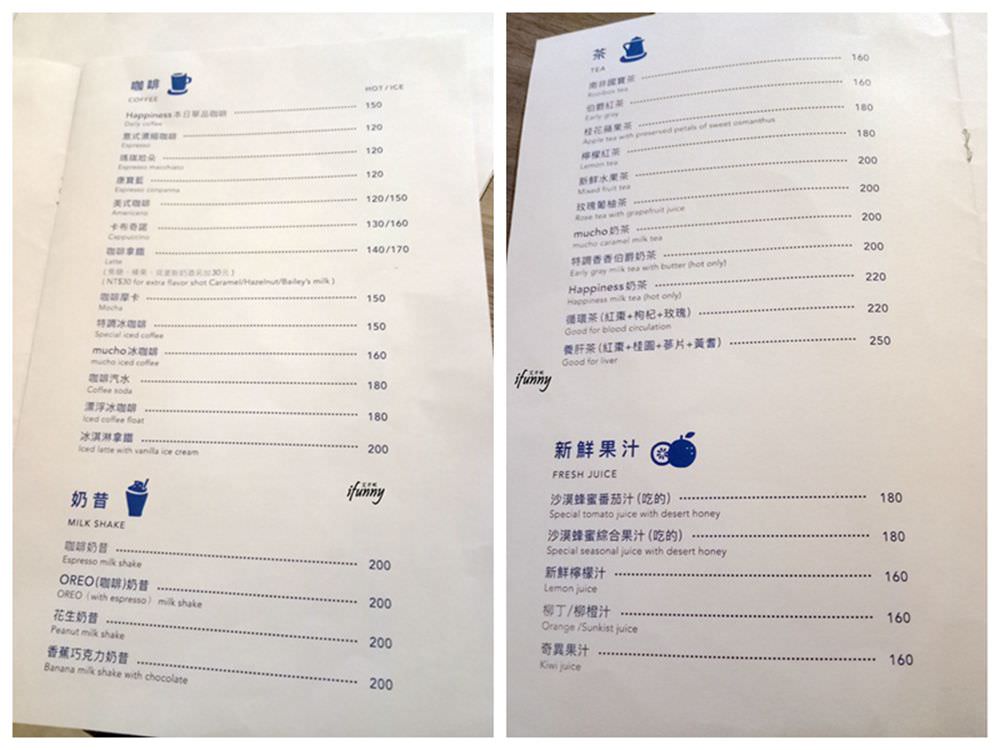 Mucho Happiness的菜單封面,帶著可愛的童趣風。詳細菜單都有拍到,參考一下囉!