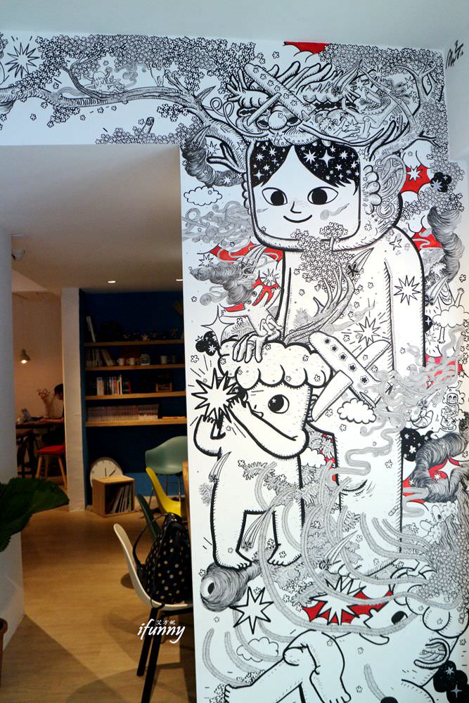 進門後右手邊的一面白牆,請了新銳畫家-王略,親自繪下創作。