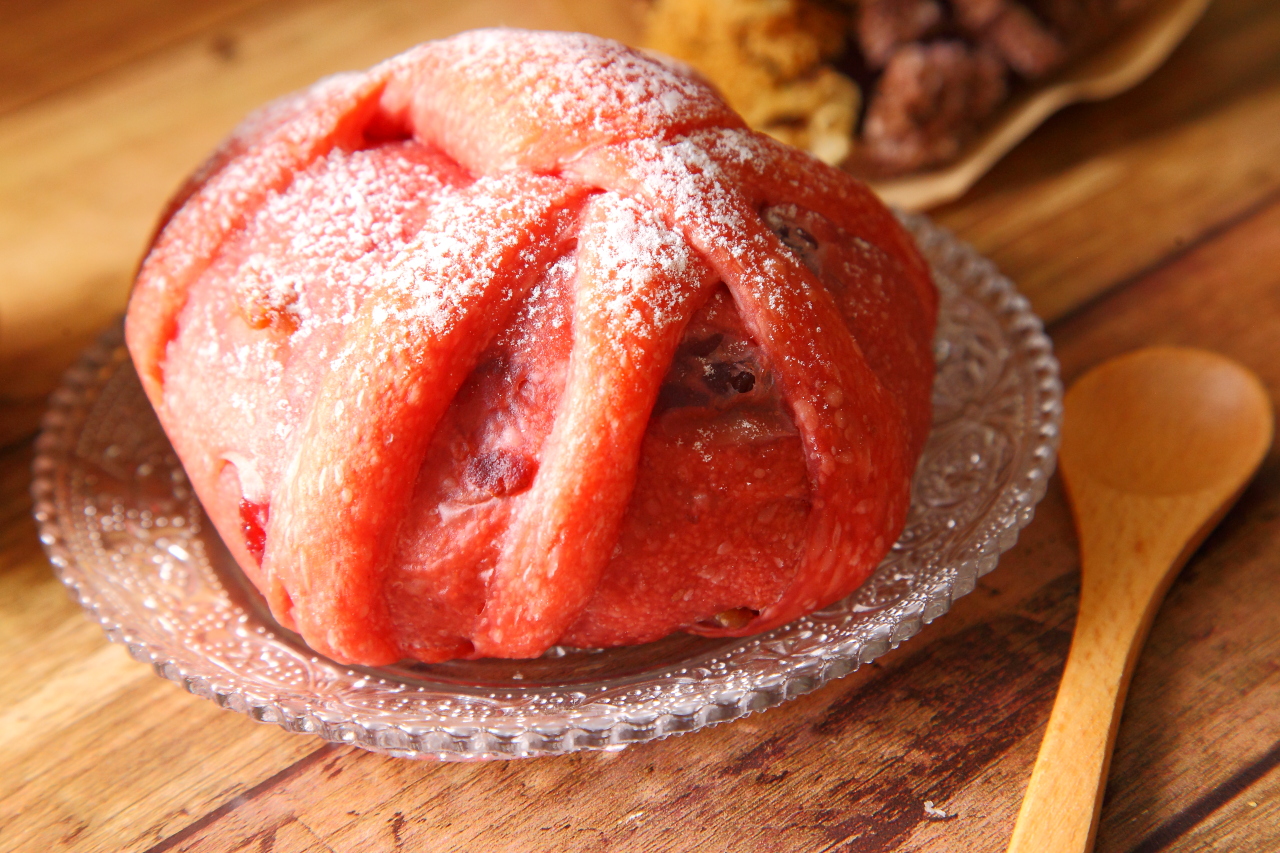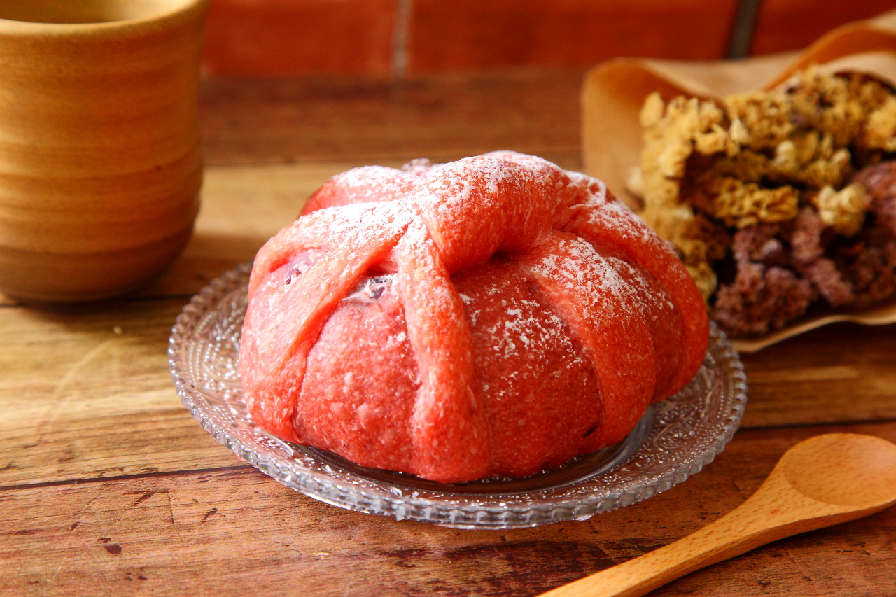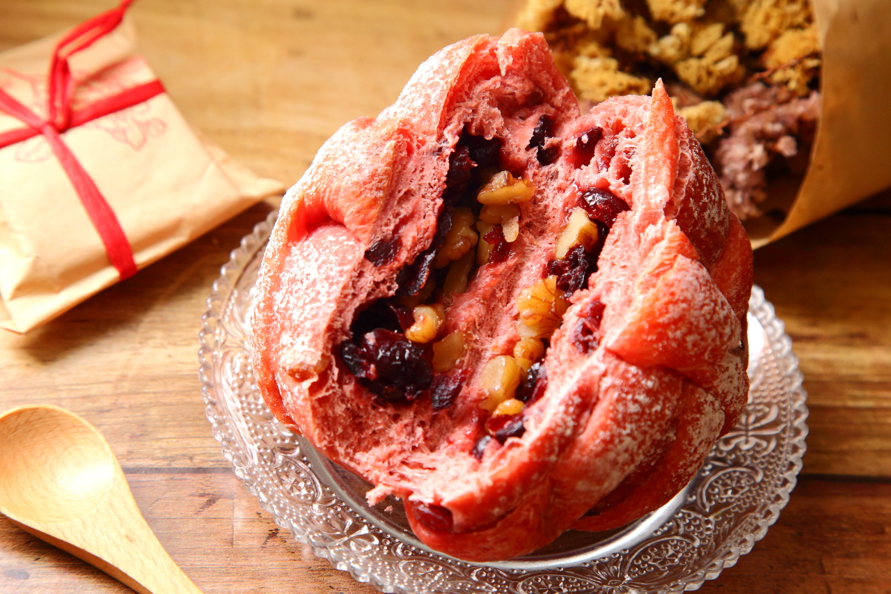 紅寶石,光看外觀紅豔的色澤就相當吸睛!麵包體是加了紅麴,讓麵包不僅有著紅寶石般的豔麗紅色,更增添一股淡雅的紅麴香