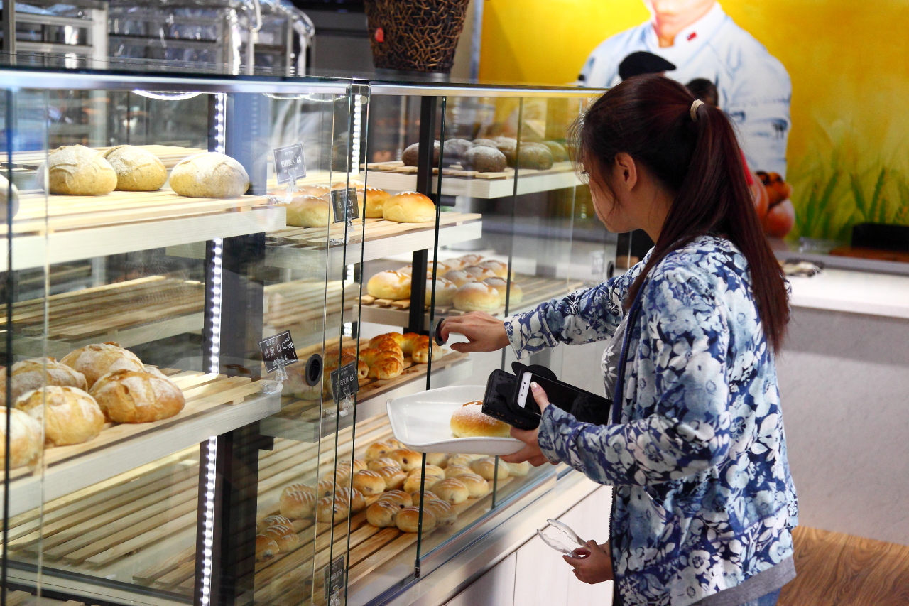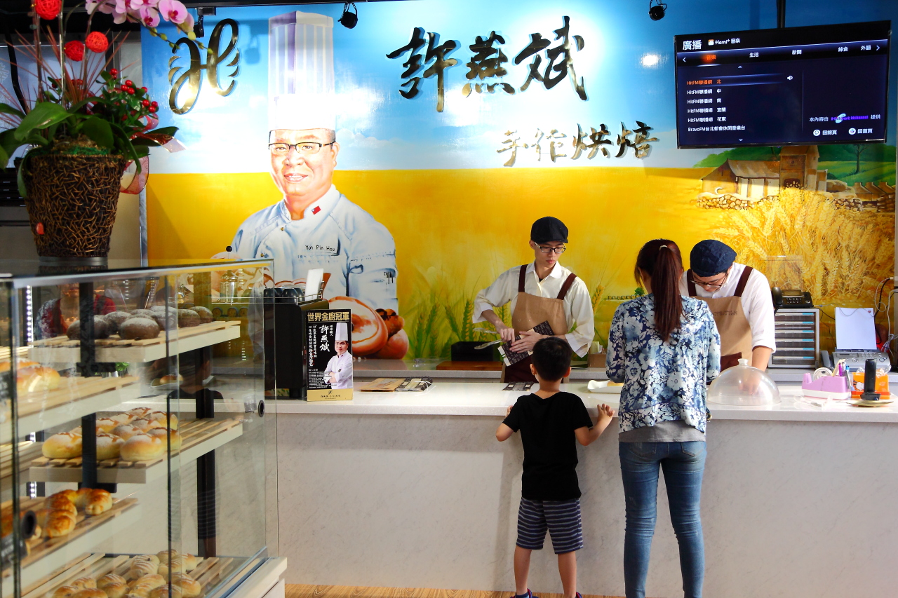 與一般麵包店開放式的麵包櫃不同,許燕斌手作烘焙-桃園店是採櫥窗自助的方式販售,新鮮出爐的麵包一顆顆整齊擺在玻璃櫃中
