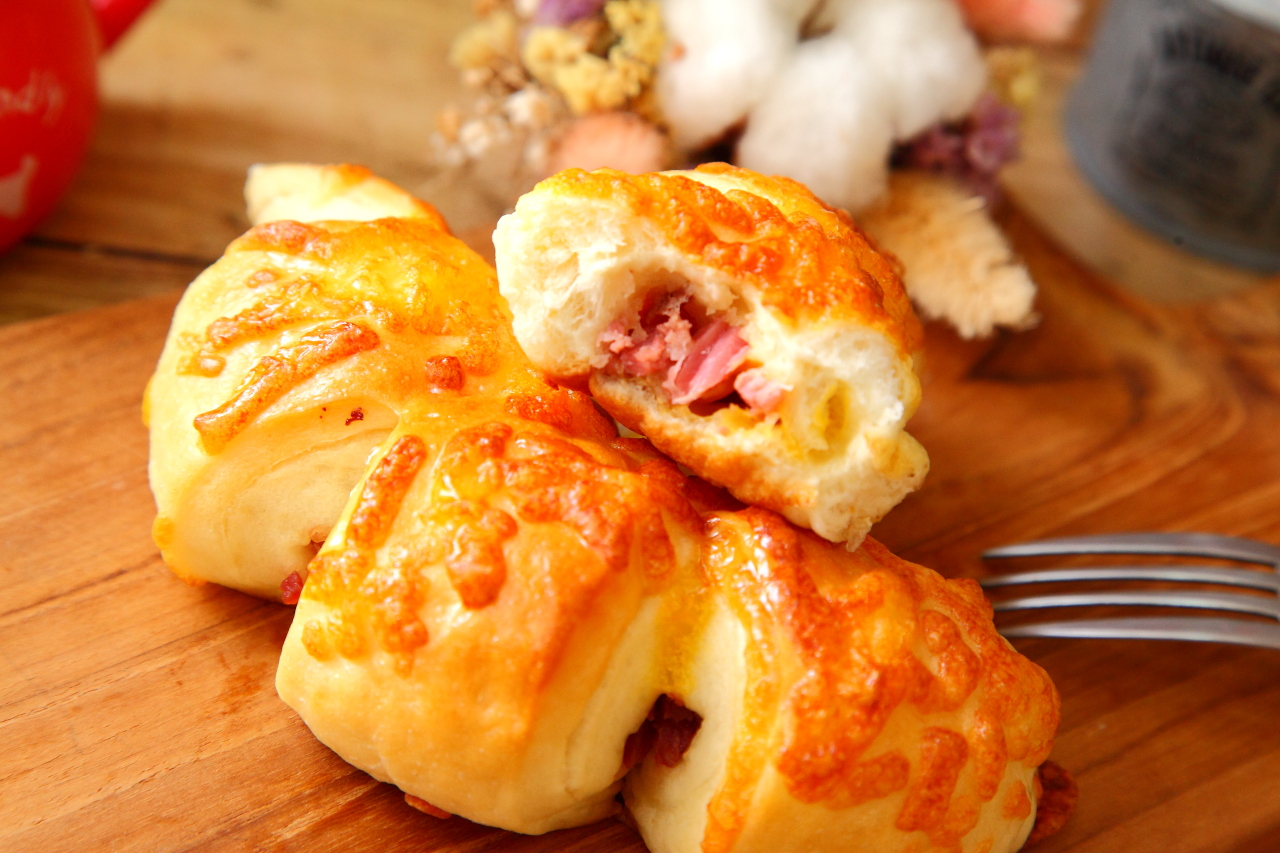 起士鹹麵包在一般台是麵包店很常見,但許燕斌的口感卻大不相同,首先是上面烤過的起司,鹹香中帶有Q脆的口感,麵包體也相當紮實,再來是內餡,切成塊的叉燒肉香味十足,微微甜香十足誘發食慾,叉燒還有帶有濕潤感,這當主食正餐超合適!