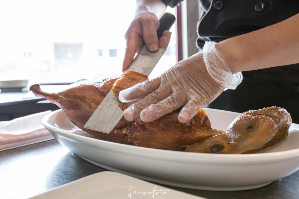 這頓飯令我深刻的料理是烤鴨四吃,現場除了有師傅親自片鴨的桌邊服務之外,也有港式點心的餐車穿梭在餐廳內提供熱騰騰的港式點心。(詳見芙悅軒)