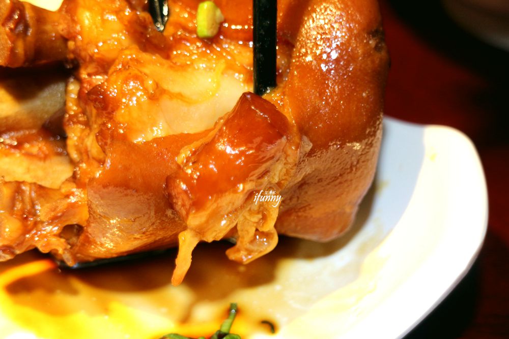 這同樣採一天一夜低溫熟成的豬腳,以筷子輕輕一剝骨肉立即分離,Q彈的口感及滷汁的鹹香,吃完都是滿嘴的膠質啊!而艾方妮最愛那個豬腳筋,真是好吃極了!傳統滷汁搭上西式的手法,這食物依然好吃無誤啊!