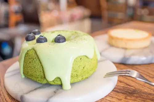 絲絨般的抹茶鮮奶油上點綴了幾顆藍莓,抹茶的清香與莓果的酸甜結合非常討喜、對味