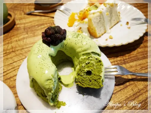 抹茶戚風的茶香屬於淡雅,並不是很濃郁的那種,鮮奶油也是清新不甜膩,吃完很舒服^^