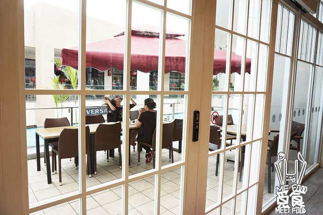 也有戶外座位 旁邊還有看起像游泳池的造景XD