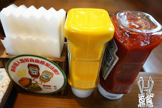 桌上有提供亨氏黃芥末跟番茄醬可以搭配薯條