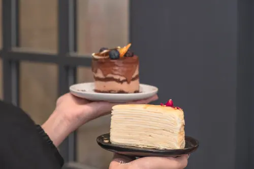 湊近一瞧,賣的是焦糖烤布蕾和手工蛋糕。