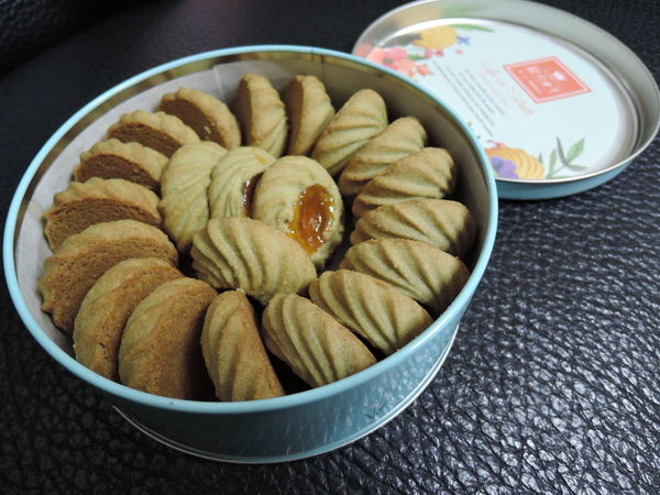 曲奇在鐵盒內以同心圓的方式排列著,每盒約有23-25片,很需要技術的功夫,