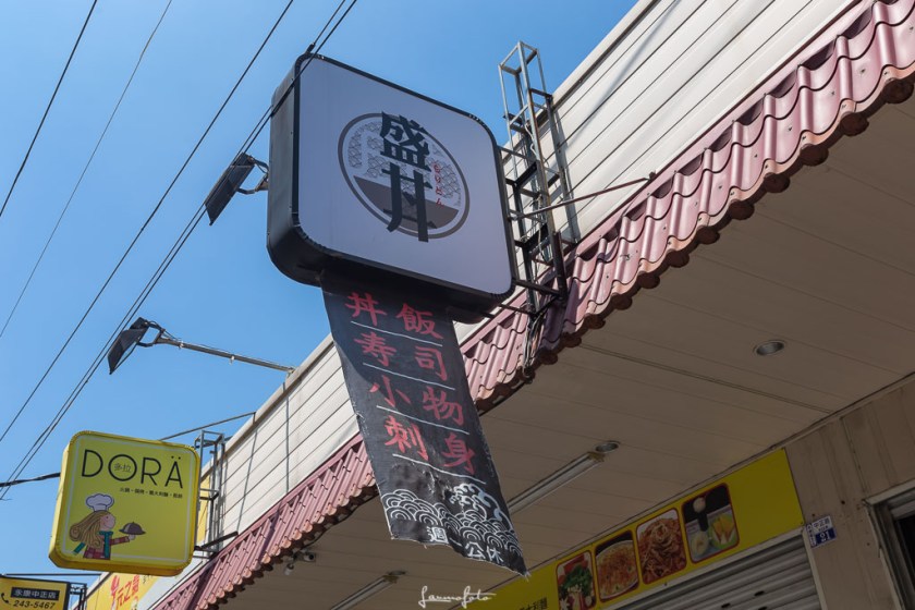 盛。丼位於,鹽行中正路台南應用科技大學對面的巷子裡,外觀看起來很簡潔俐落。除了販售丼飯外,也可來嚐嚐這裡的炙燒握壽司,以及生魚片。