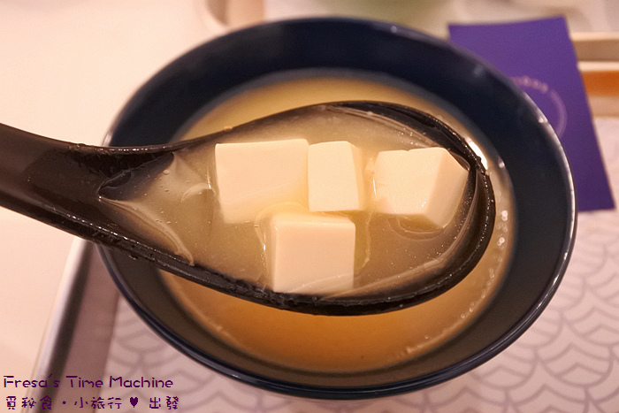 套餐附含小點炸豆腐、鮭魚味噌湯、麥茶(內用可續).
