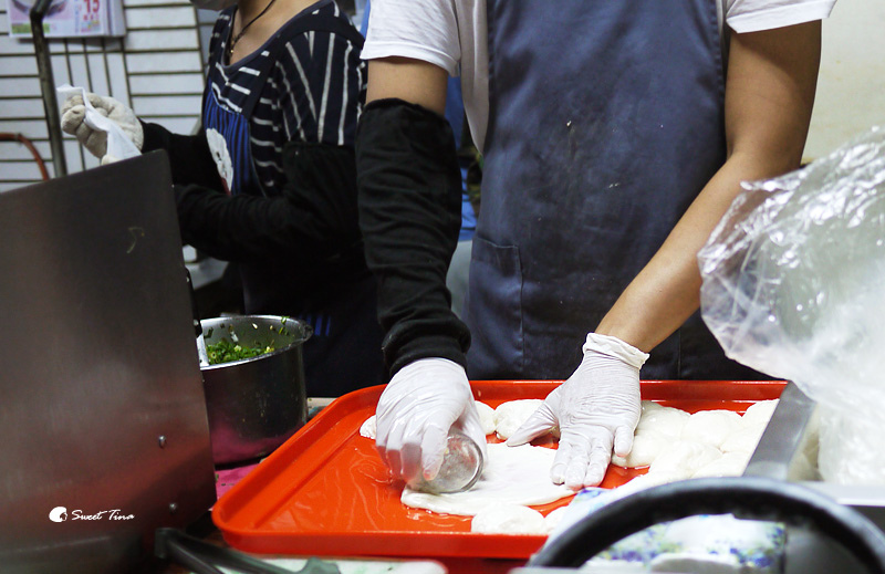 雖然是使用半油炸的方式,但口感不油膩,搭配上現包的蔥花,吃起來酥脆且蔥香味十足呢,難怪會成為人氣王。