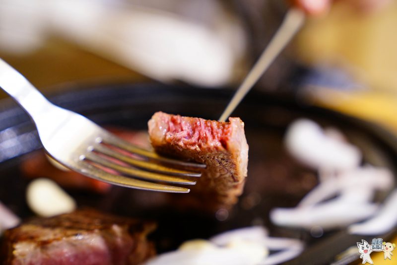 等候的同時一旁就是鐵盤,每一塊牛排滋滋作響,還有那飄香