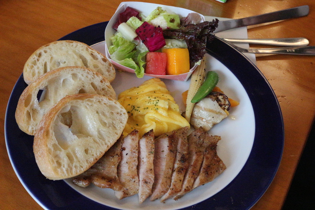 PEKO PEKO的拼盤內容物主要有麵包、沙拉、水煮蔬菜、蛋以及個人所挑選的主餐