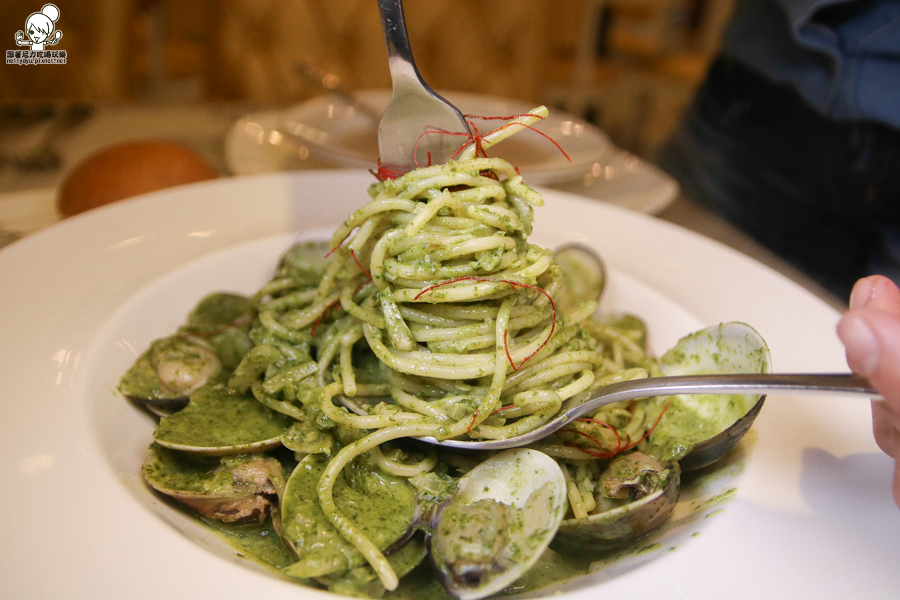 蘿勒青醬奶油蛤蠣義大利細麵老姊推薦的海味義大利麵,青醬超級濃郁的