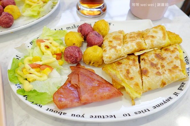 這道一上桌,我不是注意到蛋餅,反而是它的餐盤,這個像砧板式的造型真的好可愛,對廚具控的我來說,根本無法抵抗,我想我應該沒多久又會多一個戰利品(遮臉)。
