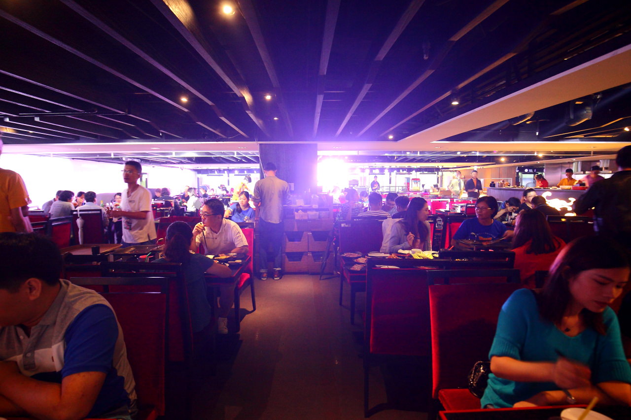 開門走進店裡的瞬間,全部的店員異口同聲的大喊"皇上吉祥",哈哈,也太酷了簡直受寵若驚,原來這就是當皇上的感覺呀,應該回個眾卿平身才是,走進皇上吉饗極品唐風燒肉,如果不是桌上的烤爐,你一定會以為這裡是夜店,絢麗的燈光音效,熱絡的用餐氣氛,用餐氣氛超嗨!