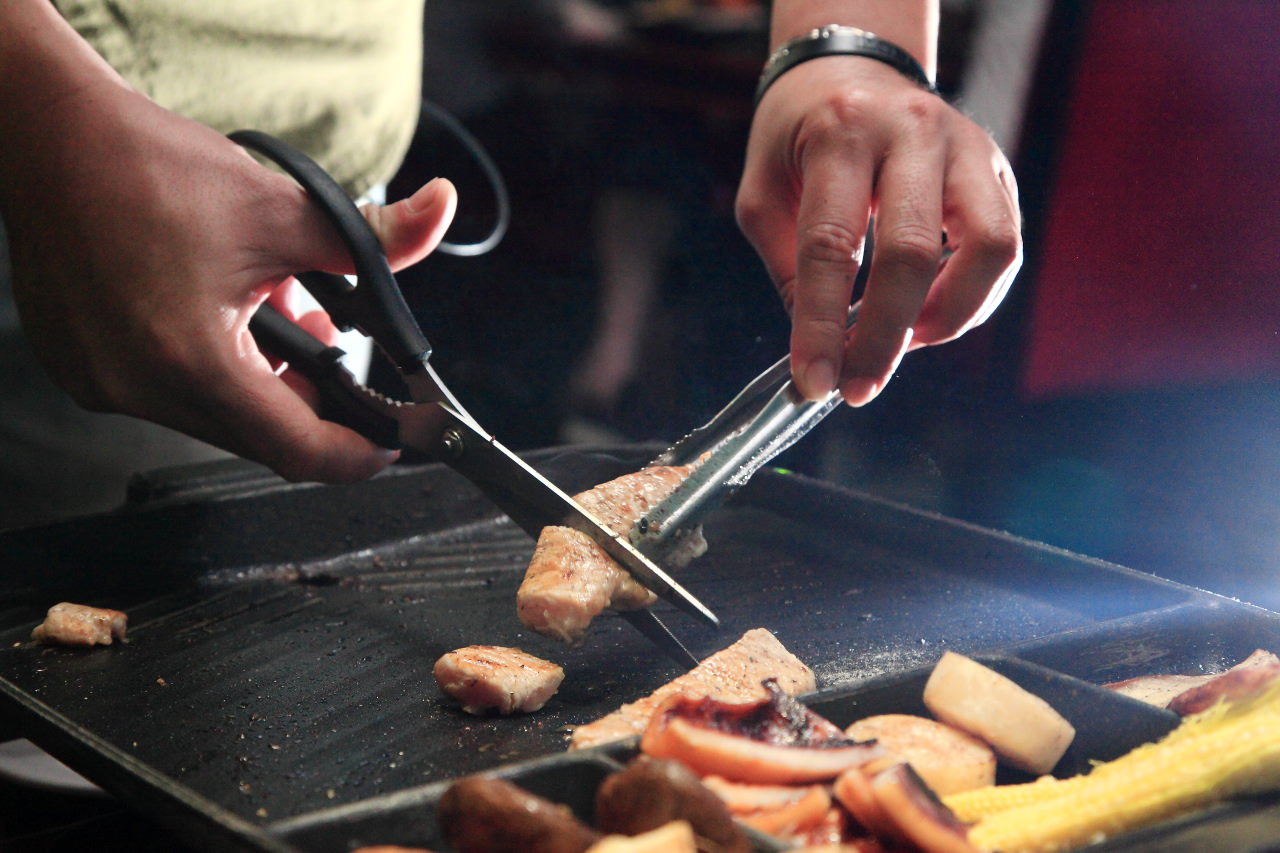 每桌都會有這樣的料理剪刀,遇到像比較大或厚的食材,就可以利用料理剪刀剪成適口的大小