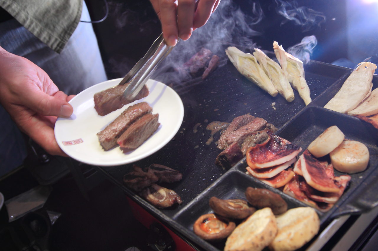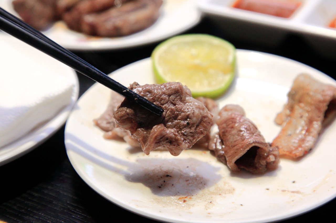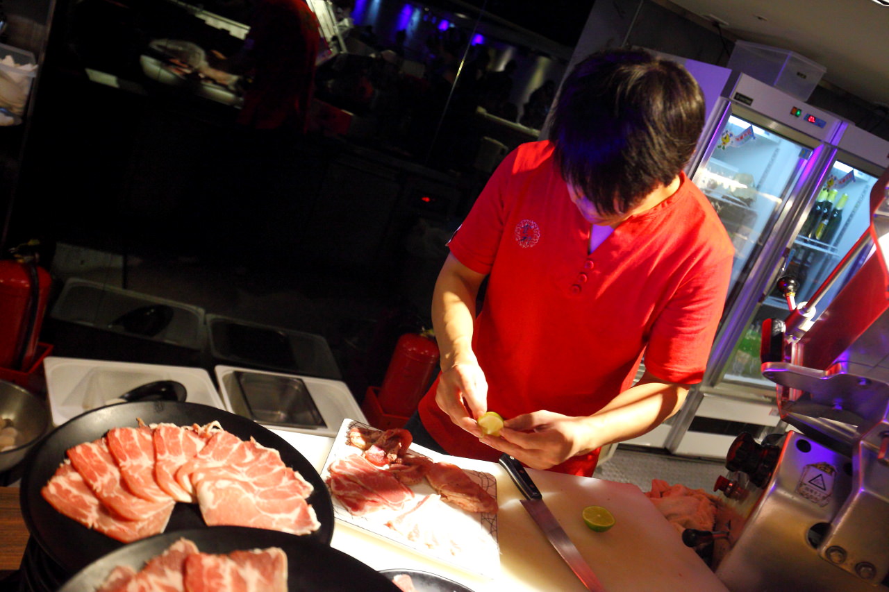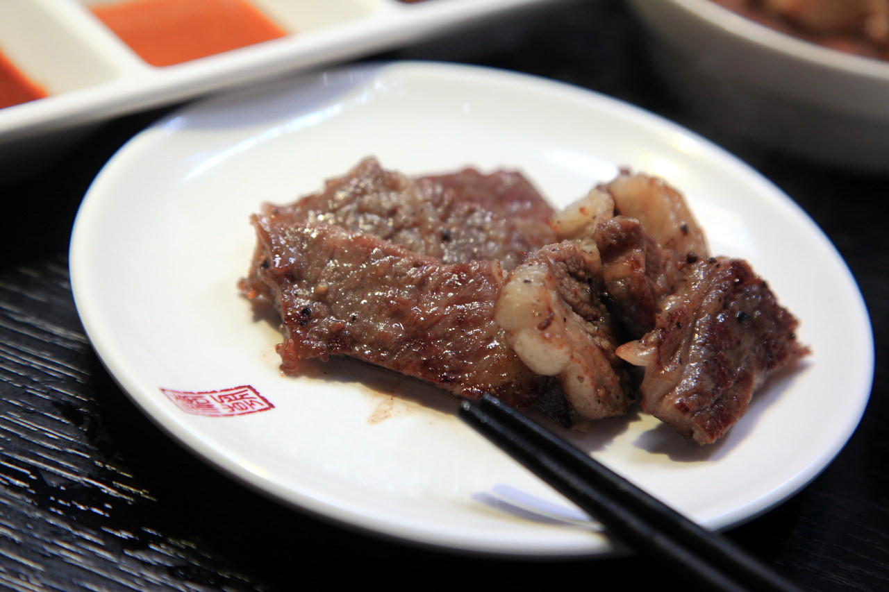 這裡雖然沒有桌邊服務,但服務人員還是會先示範怎麼烤,幫烤幾次之後,大概也就可以自己拿捏烤肉的熟度及方式,烤肉還是要自己動手才好玩