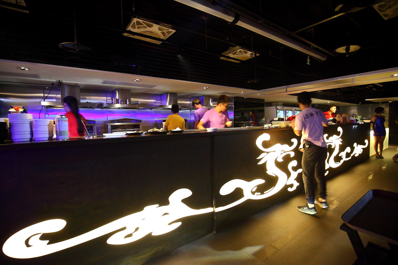 開放式的料理廚房,有著濃濃中國風,一條龍就攀在櫃檯上超酷的!