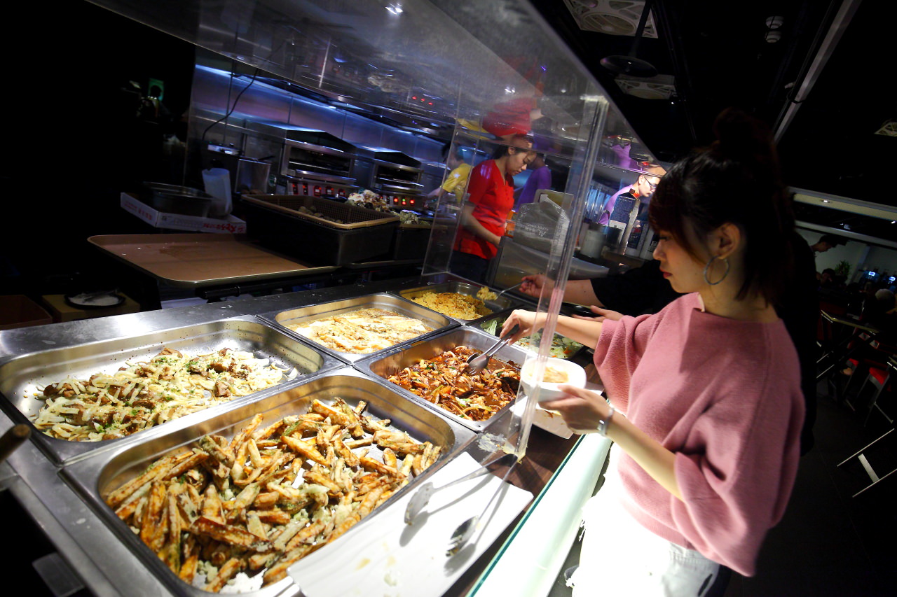 自助沙拉區,這裡有許多熱炒菜色可以自行取用