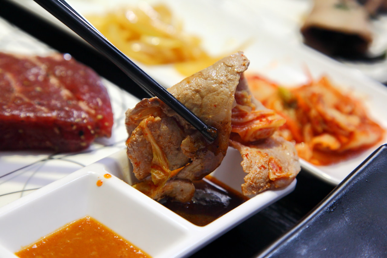 除了單吃之外,也可以包上泡菜、海帶芽及洋蔥絲,讓梅花豬肉片口感更加豐富有趣