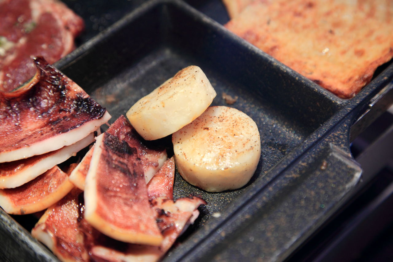 烤大圓貝,很多吃到飽都是用腰子貝,皇上吉饗極品唐風燒肉使用頂級大圓貝,濃烈鮮甜滋味一吃就上癮!