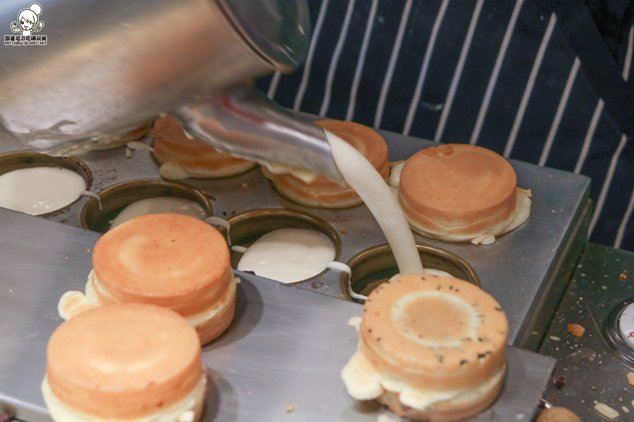 上蓋與下蓋的密合處,都會細心的在擠上一圈麵糊,讓紅豆餅咬下不會爆漿沾滿手