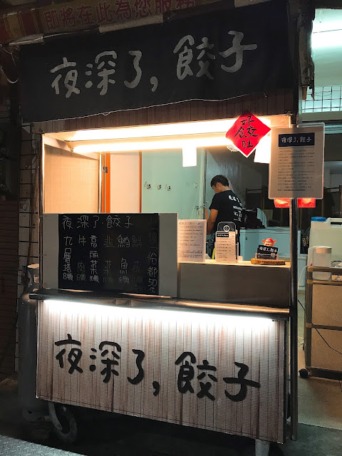夜深了是小攤位,攤子上還貼一張好餃肚的貼紙十分可愛