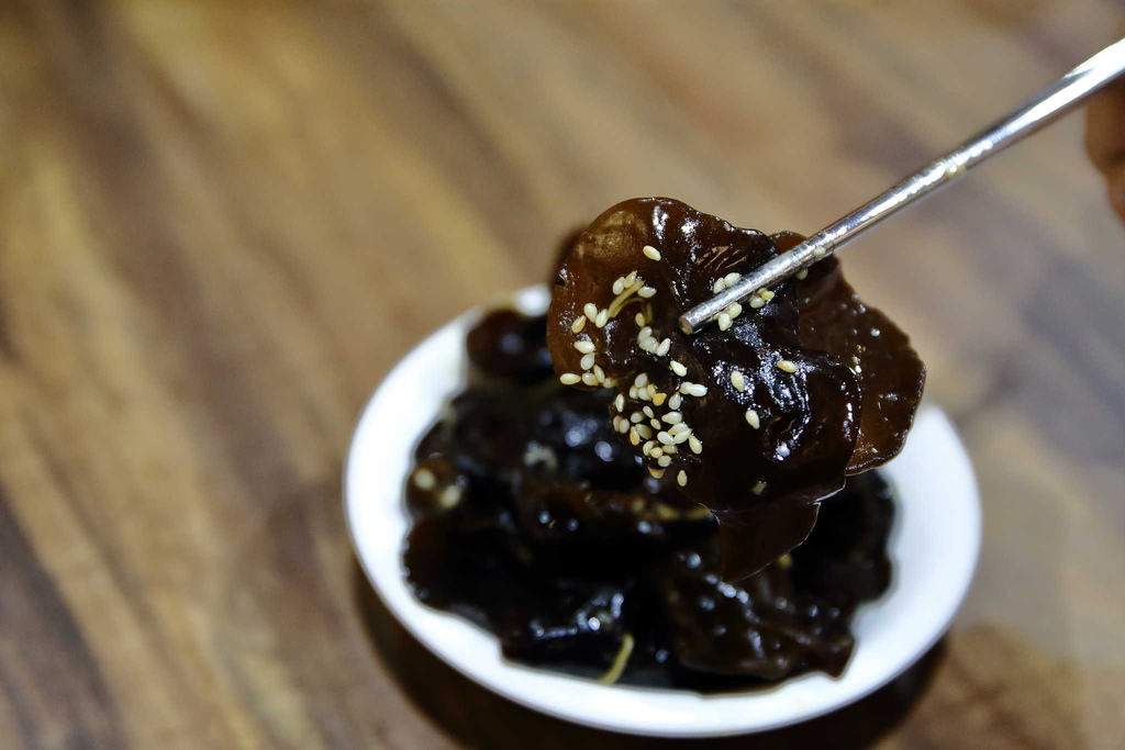 薑絲、黑木耳一次夾一起入口,微酸和爽脆的口感,真的好好吃!
