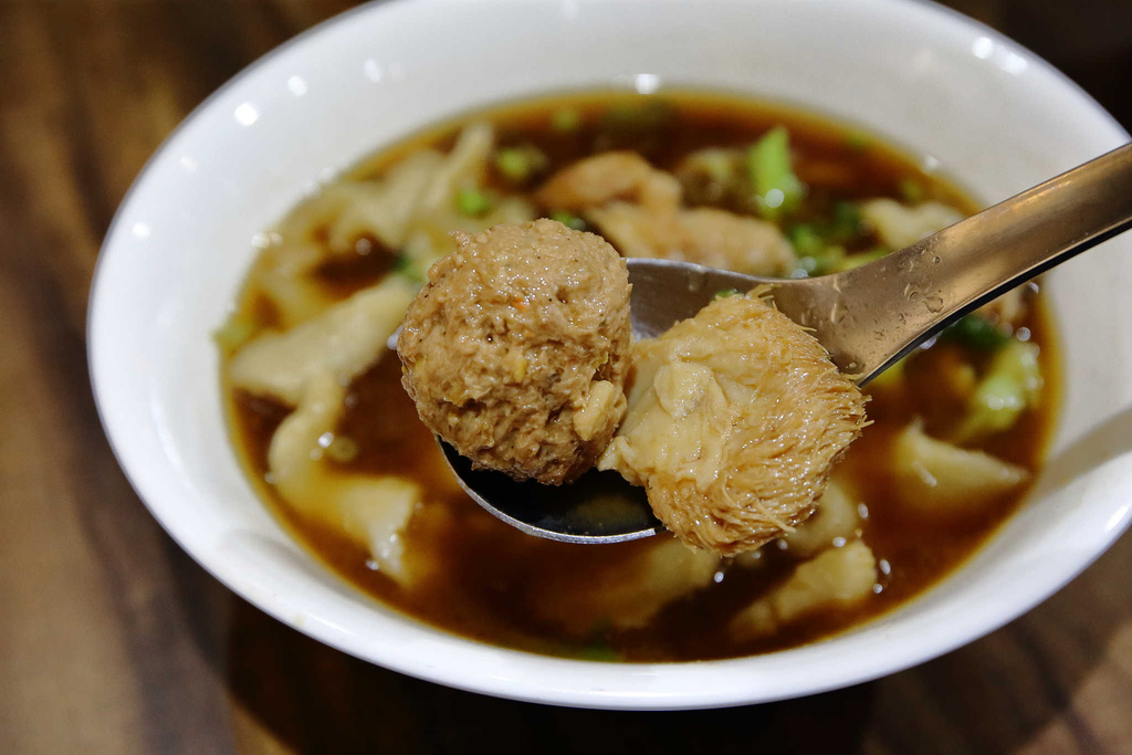 完全沒有加肉的素紅燒疙瘩,湯頭喝起來近似牛肉麵,滋味濃郁,十分開胃