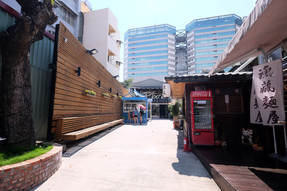 一中街173號裡,有痞客啡咖啡館、服飾店及拉麵店,其中最醒目的就是藍箱處(是有多難相處?
