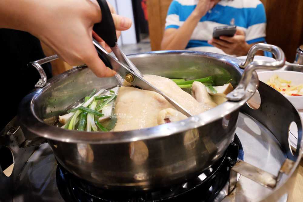 會先上半熟的雞,拍完之後,服務人員會開始幫忙把雞剪塊