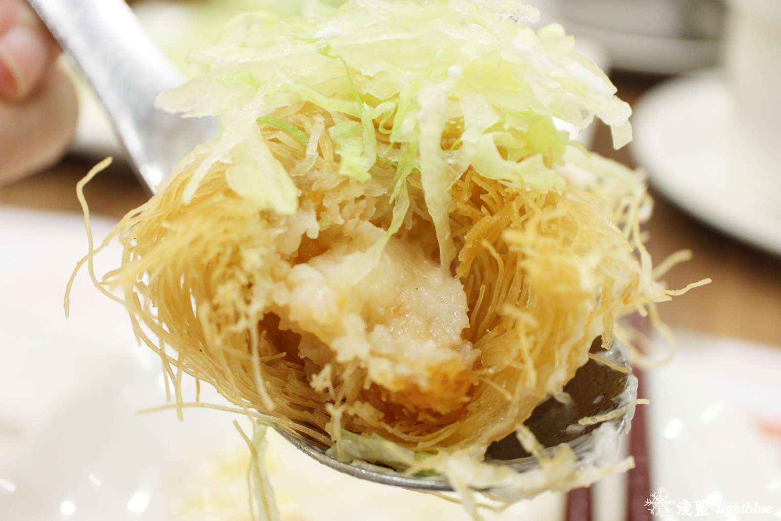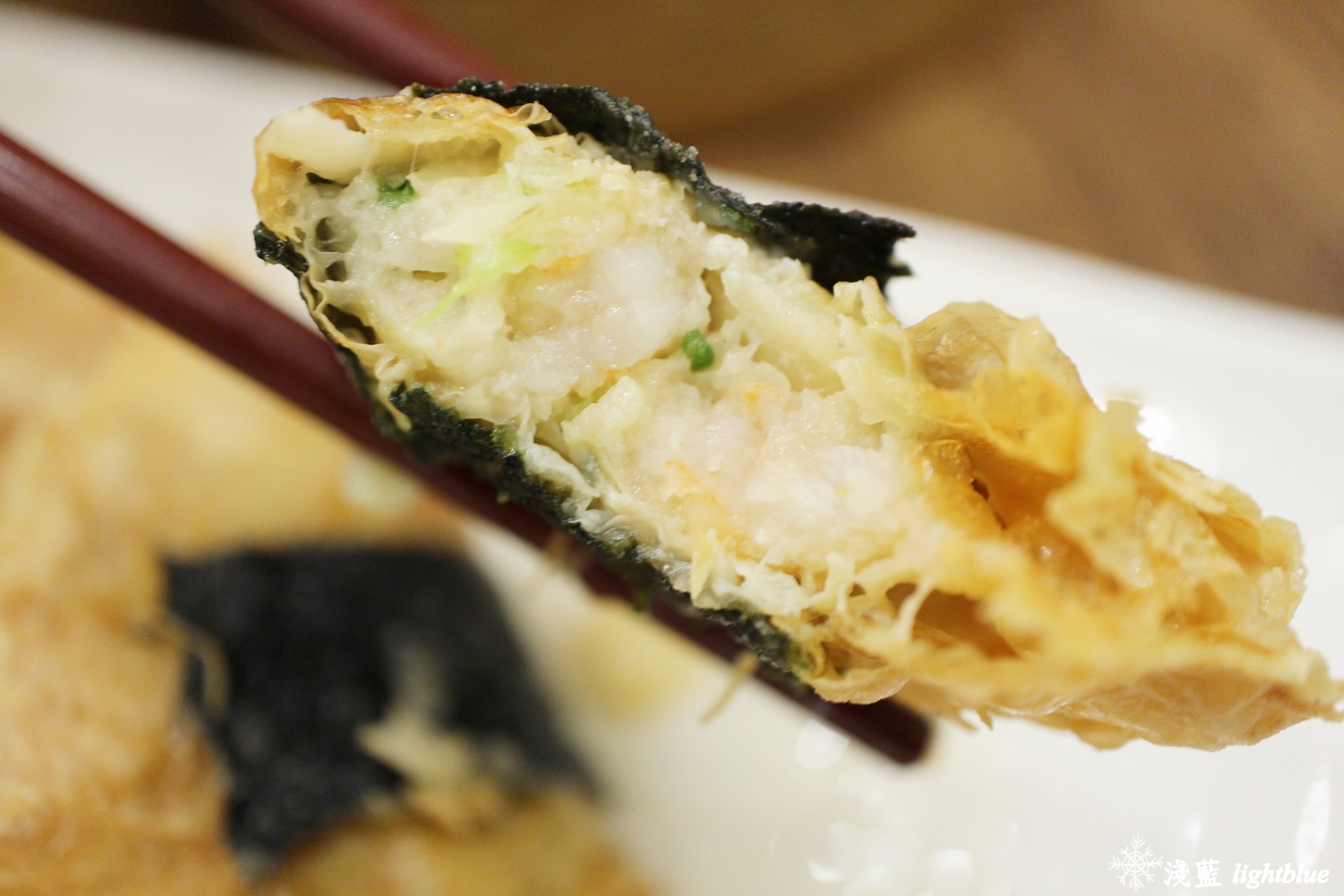 雖然是油炸品項,不過口感十分乾爽,腐皮又酥又香又脆,裡頭包了滿滿的蝦子,我就是愛港點總是能吃到好多蝦子!一同附上的沾醬也不要錯過,酸酸鹹鹹的跟炸物很搭