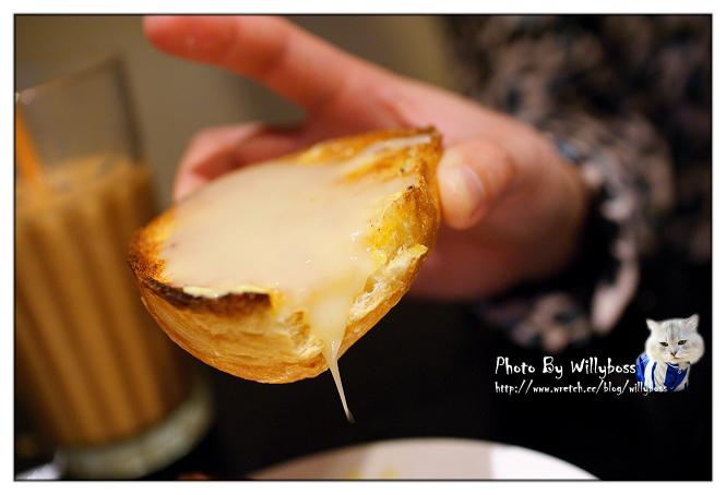 豬扒包像法國麵包那樣口感帶脆又很扎實,烤過之後的酥脆感更是明顯,簡單的形容就是酥脆有嚼勁,煉乳的味道不用多說就是甜到心坎裡,這對絕大數人來說肯定都會太甜,但是偶爾一吃感覺也不錯XD",反正和西多士一樣是吃完可能就得閉關減肥的邪惡食物...