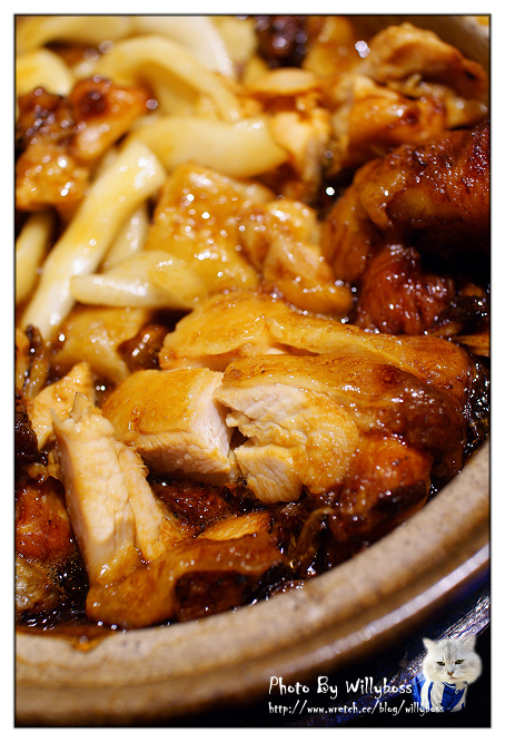 上次吃到的香橙煎軟雞讓人印象深刻,後來查了些資料聽說雞肉類水準都很不錯,於是這次就點個蜜汁花雕雞(小)230元吧!剛上桌的時候不是這副尊容,而是整塊的雞腿肉浸潤在濃濃的醬汁裡頭,正當我準備好要拍照的時候,說時遲那時快,服務人員用迅雷不急掩耳的速度用剪刀把雞肉切開了,而後隨即加入粄條,均勻攪拌之後,就變成這張照片裡的模樣,服務人員的現場秀說真的很有一種臨場感XD。
