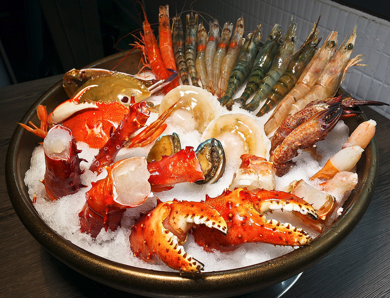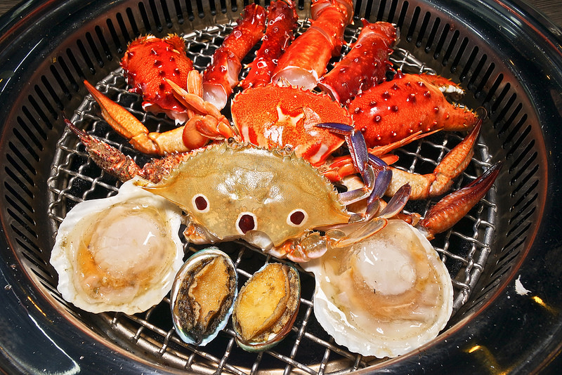 這邊就豪華了, 帝王蟹以及各種蝦蟹, 和牛, 牛舌,伊比利豬都有,甚至還有烏魚子!!