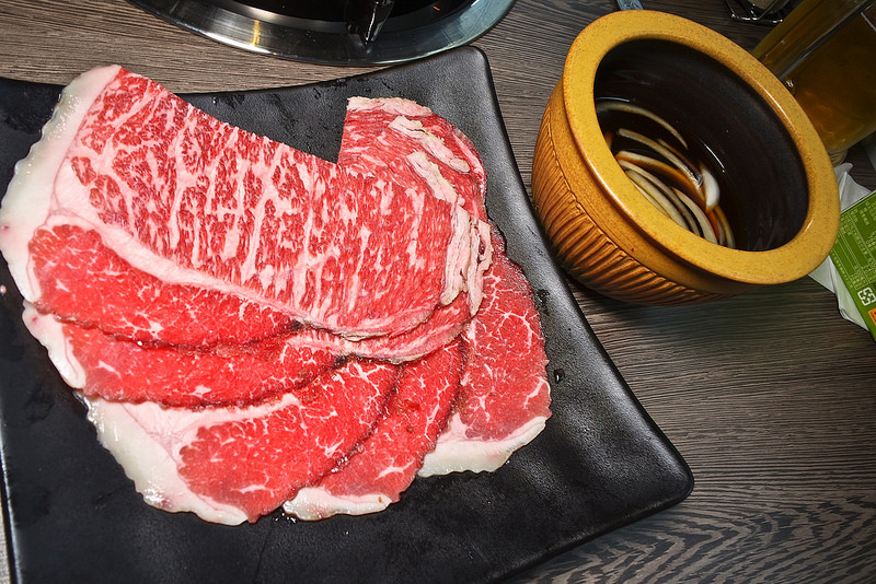 然後這是拿高檔的和牛肉片來涮壽喜燒
