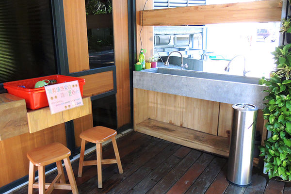 用餐完畢後需自行拿到外面洗手槽清洗餐具喔!