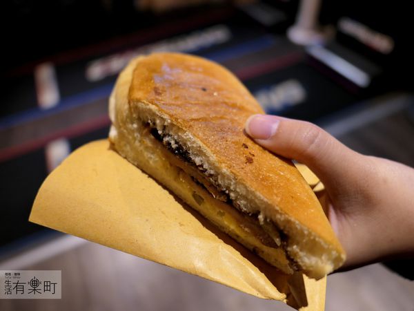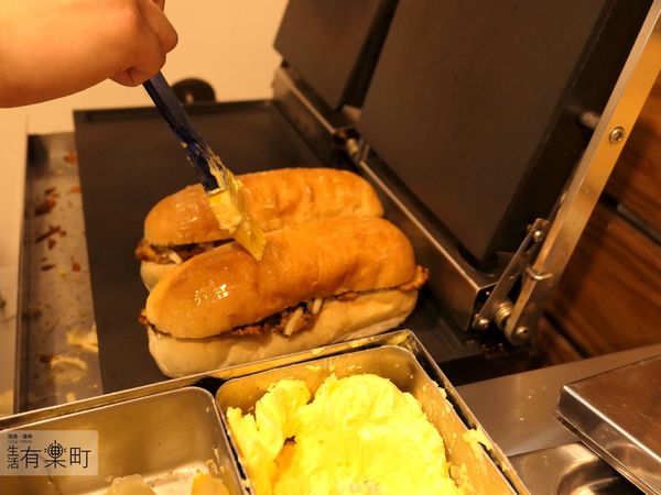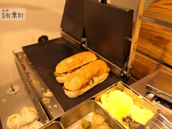 油亮油亮的麵包皮,夾著香噴噴的里肌豬肉和起士,還有佐上些特製醬料,在旁邊看得好期待喔。