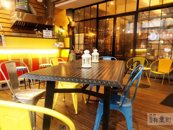 戶外座位區帶有工業風格,和室內用餐風格不太一樣。