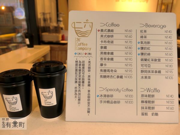 看完PUNCH古巴三明治,另一邊則是26" coffee company外帶咖啡吧,以外帶咖啡為主的咖啡吧,也可以選擇內用,內用同樣是用外帶杯。