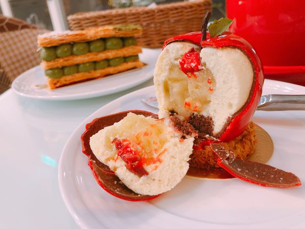 裏頭包裹著巧克力蛋糕與蘋果慕斯