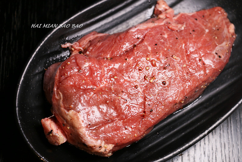 剛才那塊大牛排,放上烤盤發出滋滋聲響