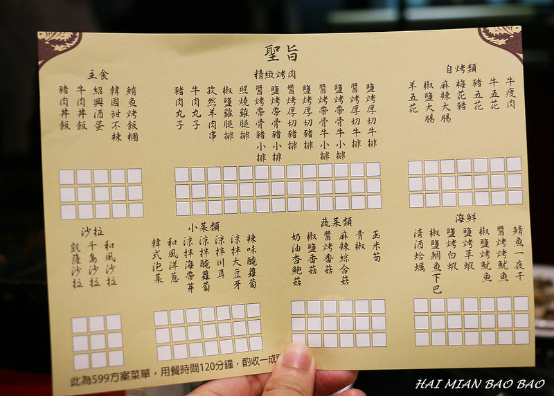 599及769元兩種價位,需收一成服務費,用餐限2小時
