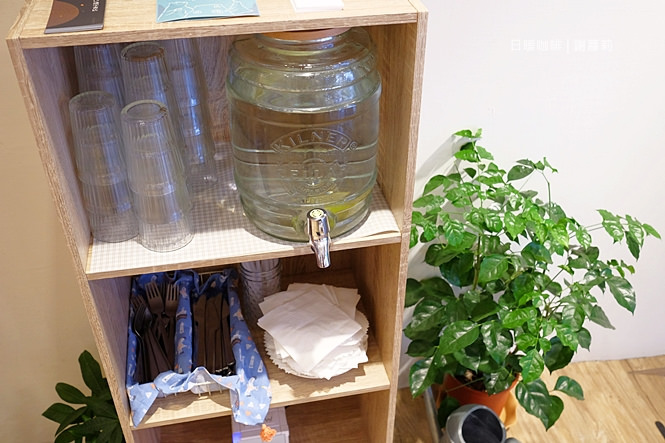 木質櫃上簡單提供一些用餐需要的東西,餐具、紙巾、開水,這邊不收服務費,所以如果有需要的朋友都可以自行拿取。