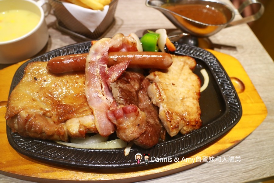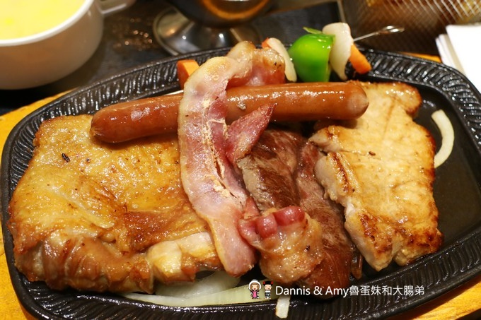 這道Amy個人還蠻推薦這的,因為一次可以吃到豬排、牛排、雞排和德式香草腸~~